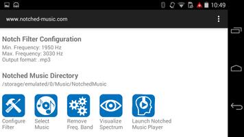 This app allows everybody suffering from tinnitus to create their own notched music.It takes an arbitrary piece of music in .mp3-format as input, applies a user-defined notch filter to remove a small frequency band around the tinnitus frequency, and stores the resulting notched music in a different .mp3-file. This app also provides tools that help patients to determine their individual tinnitus pitch and to design tailor-made notch filters that best fit their needs. In addition, this app visualizes the energy spectrum of the notched music such that patients can easily check if applying the notch filter produced the desired result.